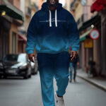 Slip into subtle style with this big & tall men’s hoodie set, featuring a navy gradient design. Crafted from a warm cotton-blend, it’s soft yet structured, ideal for layering or solo wear. With a tapered jogger silhouette and stretchy fabric, it’s built for comfort on cooler days, without compromising style.