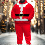 Men’s Christmas Santa Cosplay Big and Tall Hoodie Sweatpants 2-Piece Set