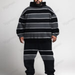 Men’s Classic Tricolor Stripe Plus Size Hoodie Suit