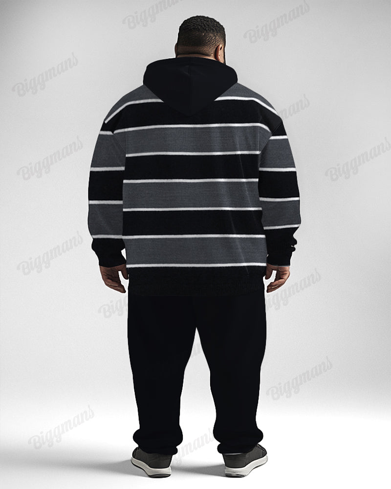 Men's Classic Tricolor Stripe Plus Size Hoodie Suit