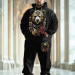 Men’s Classical Luxury Bear Pattern Big and Tall Hoodie Set
