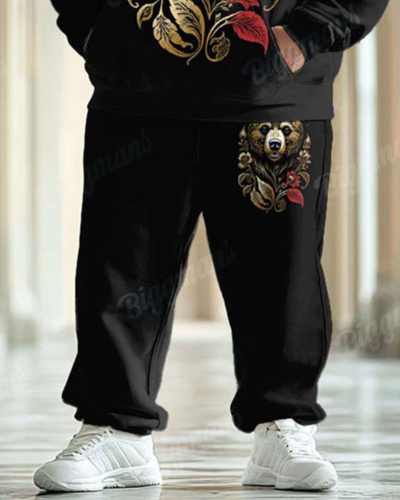 Men's Classical Luxury Bear Pattern Big and Tall Hoodie Set