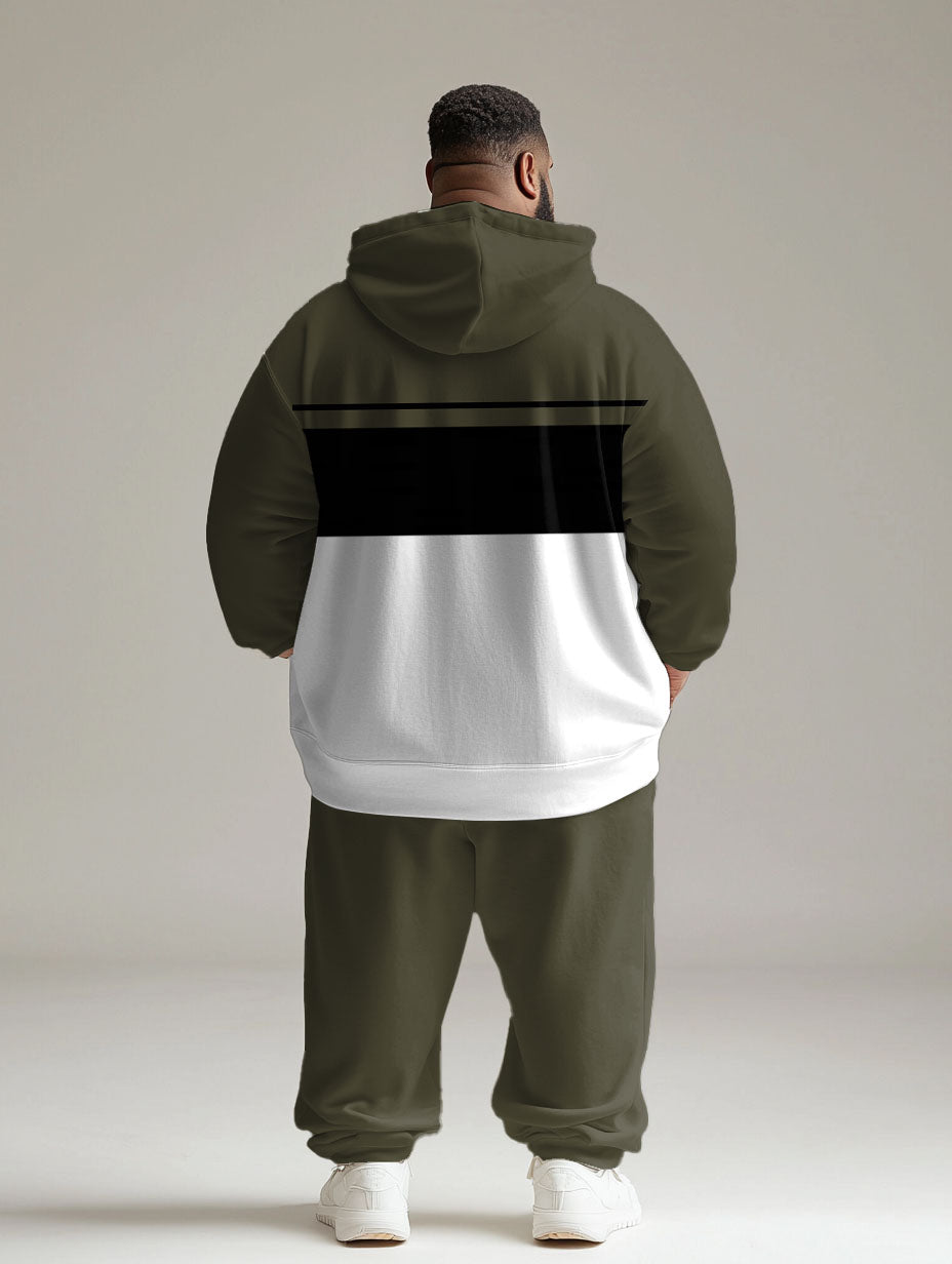 Classic meets urban in this big & tall men’s hoodie set featuring harmonious green, white, and black color blocks with lettering detail. Designed with a relaxed fit and reinforced fabric, this set balances understated style with confident individuality—perfect for those who want to stand out without being loud.