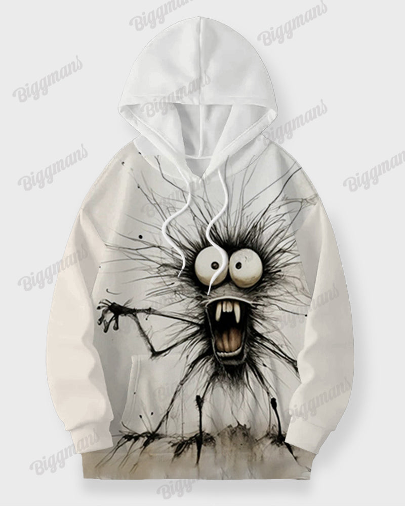 This hoodie set is designed in plus sizes to embrace all shapes and sizes. The black color is mysterious and the gothic furball monster print is unique. Hooded style is fashionable and comfortable, suitable for daily casual wear. Unique design makes you stand out from the crowd and show a different charm, a must-have for fashionistas.