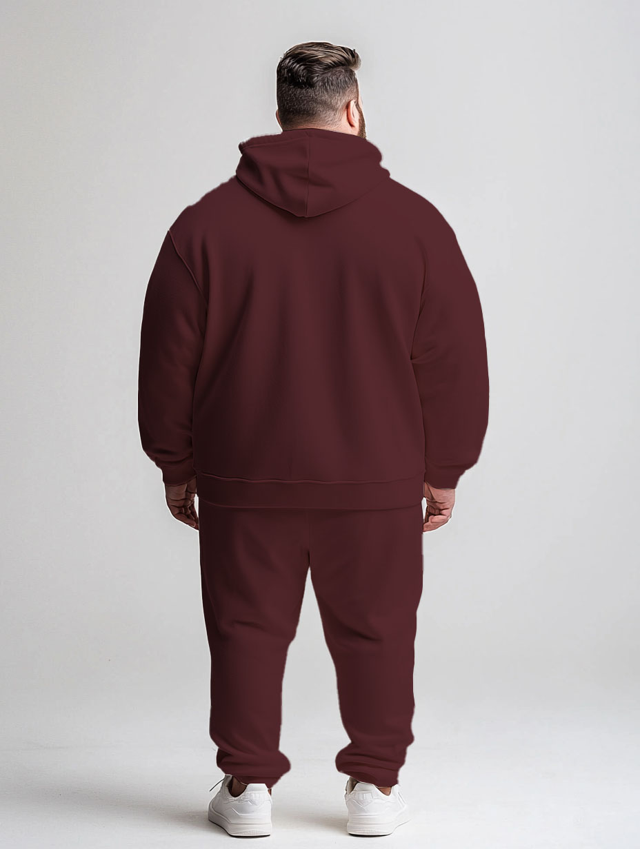 Men’s Daily Casual Versatile Classic Wine Red Gray Plaid Print Plus Size Hoodie Suit