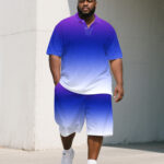 Men’s Elegant Purple Gradient Short Sleeve Polo Shirt Shorts Big & Tall Sets