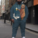 Men's Fun Bear Beer Print Plus Size Hoodie Suit