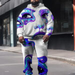 Men’s Large Size Colorful Pop Style Face Street Long Sleeve Hoodie Set