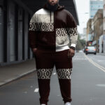 Men's Large Size Ethnic Pattern Color Block Casual Hoodie and Sweatpants Two Piece Set
