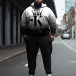 This men’s hoodie and pants set is in a white-to-black . Adorned with a bold “KING” and crown print, it makes a strong statement. The matching black pants complete the look, offering a color combo that’s easy to mix and match. With a loose fit for ultimate comfort, this set ensures you stay fashionable and relaxed all day!