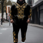 Step into timeless elegance with this big & tall vintage hoodie set, where symmetrical gold floral motifs evoke Renaissance grandeur against a rich base. The brushed thermal fabric and relaxed cut provide aristocratic comfort, equally suited for museum visits or autumn strolls – a wearable ode to retro fashion.