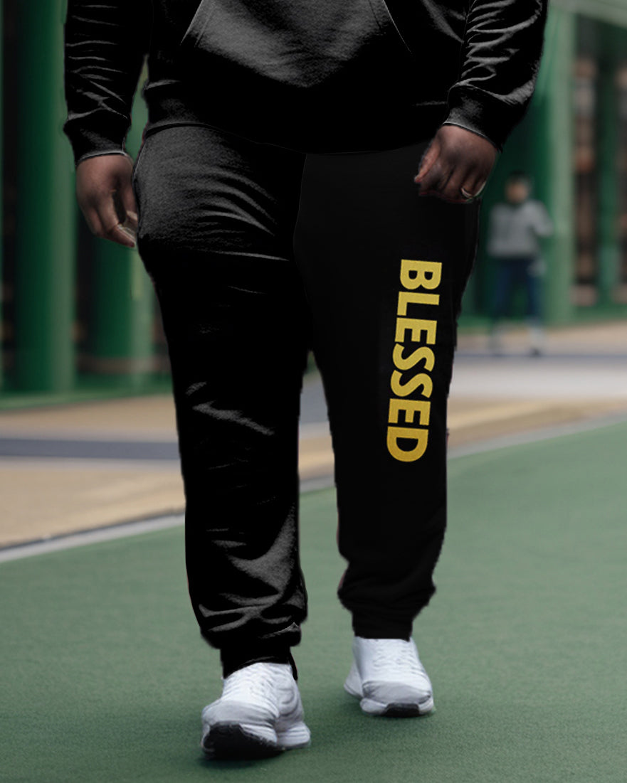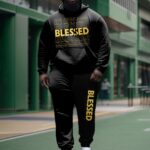 This men’s hoodie set is designed with . Adorned with a yellow “Blessed” print, it adds a pop of color and a statement to your look. Designed with a loose fit, this set ensures maximum comfort, making it ideal for various occasions. Its simple yet fashionable aesthetic keeps you cozy and cool.