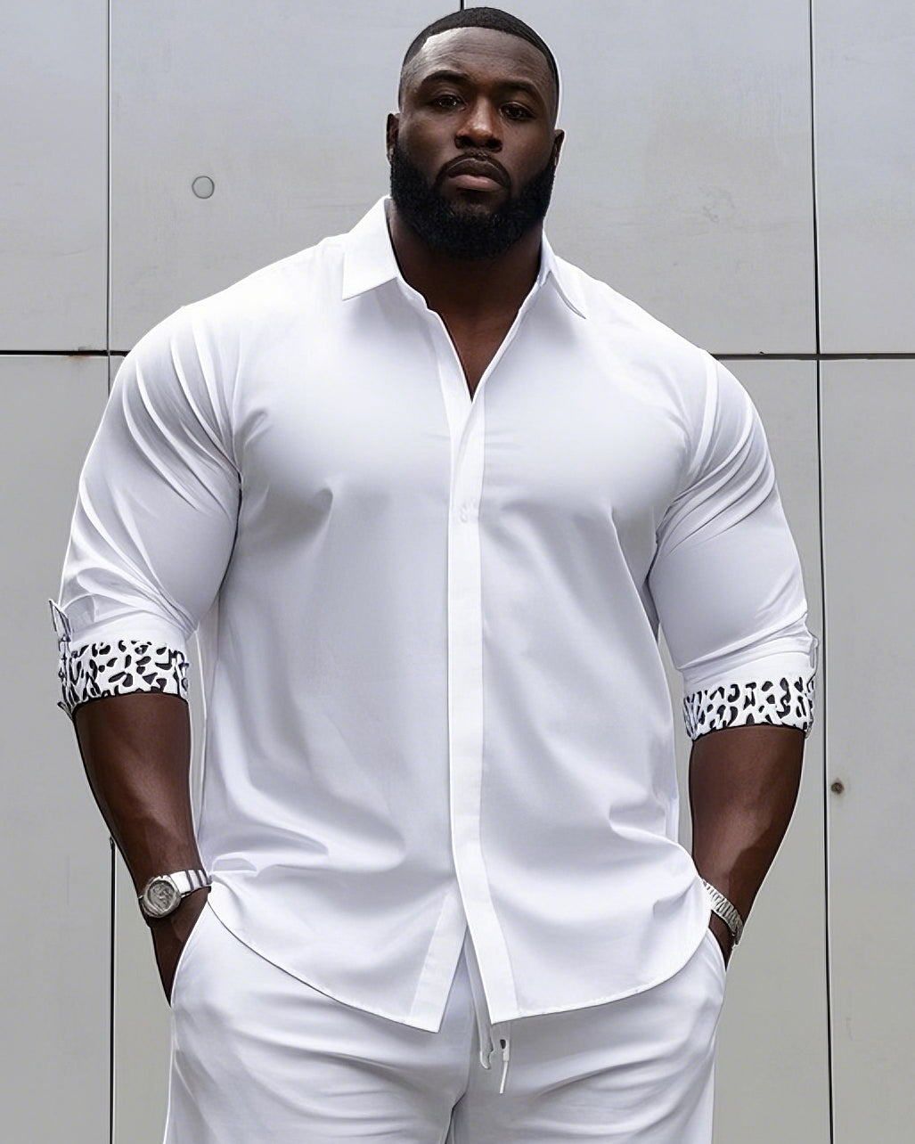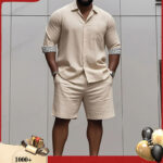 Men’s plus-size casual daily long-sleeved shirt and shorts suit