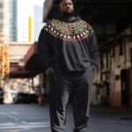 Men’s Plus Size Casual Diamond Long Sleeve Hoodie Sporty Two-Piece Suit