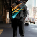 Men’s Plus Size Casual Hip Hop Aurora Black Graphic Hoodie Two-Piece Set