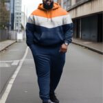 Men’s Plus Size Casual Sports Hoodie Long Sleeve Rambler Color Block Two Piece Set