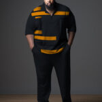 Enjoy the classic style and modern design with this polo set, featuring bold yellow color-block details. The relaxed fit and zipper collar are special and enhance your silhouette. Ideal for formal settings or a refined look, this set is a sophisticated choice for men who value style and comfort.