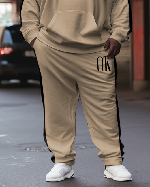 Men's Plus Size Letter Stripe Splicing Print Hoodie Set of Two