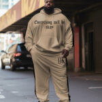Men’s Plus Size Letter Stripe Splicing Print Hoodie Set of Two