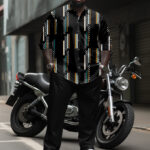This walking set in sleek black makes a statement. Featuring bold geometric prints, the patterns create a dynamic play of light and shadow. Its relaxed fit can enhance your physique, exuding confidence and charm. Timeless yet modern, it’s perfect for the gentleman who values style and professionalism.