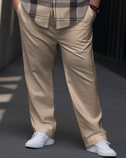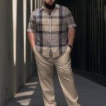 Embrace the classic plaid and reminisce the retro charm in walking sets. This set showcases the classic , and the khaki color adds a retro and simple style. The loose-cut design provides excellent comfort for large men. It is an ideal choice for any man who is in pursuit of a fashionable and simple style.