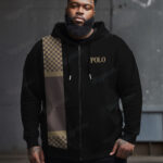 This men’s plus size jumper features a minimalist check that is cleverly stitched to the body for a unique layering look. The hood adds a casual touch, while the zip closure makes it easy to put on and take off and enriches the look. An eye-catching monogram print on the chest shows off your attitude. The loose, plus size fit provides a comfortable fit for men of all shapes and sizes, making it a fashionable and practical choice.