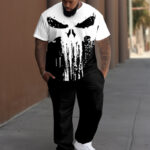 Interested in skulls? Try this set! The unique print makes your vision full of impact. The appropriate ink design makes the pattern more innovative. Its loose cut allows you to move freely. This set is very suitable for streetwear and hip-hop style, allowing you to enjoy the unique street culture in spring and summer.