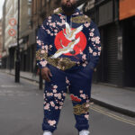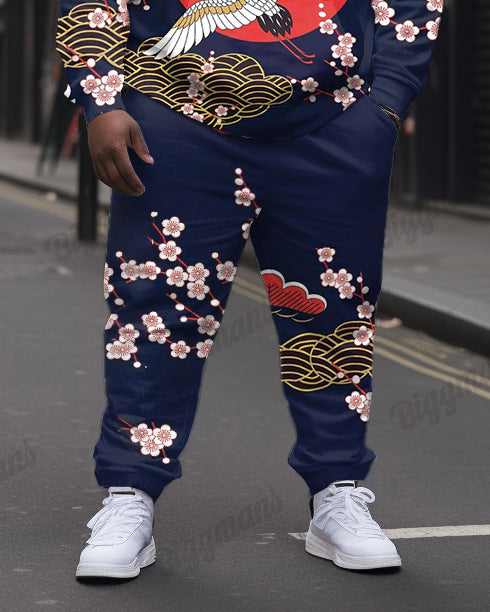 Men's Plus Size Tokyo Ukiyo Full Moon Crane Hoodie Suit