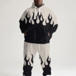 Ignite your style with this Big and Tall Men’s Hooded Tracksuit. Featuring bold flame graphics and a modern color block design, this tracksuit combines street style with ultimate comfort. Perfect for casual outings, workouts, or making a statement, it’s your go-to for effortless cool.