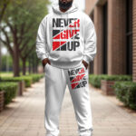 Men’s Simple Daily Never Give Up Letter Print Plus Size Hoodie Suit