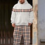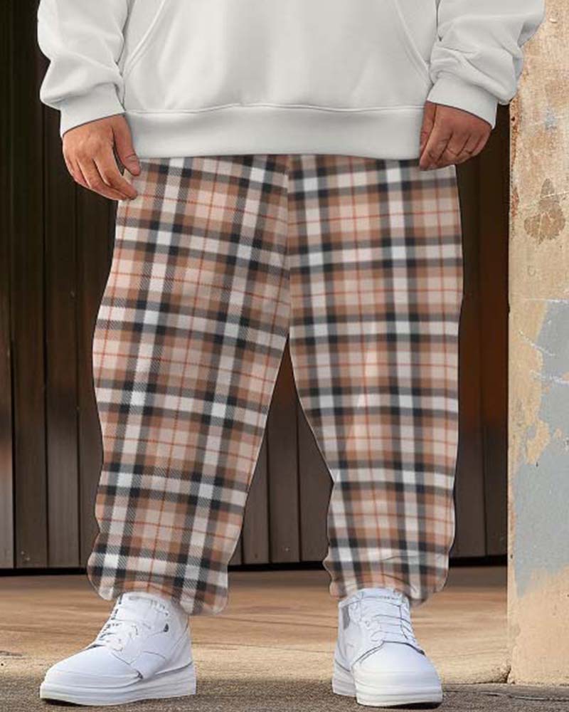 Men’s Street Fashion Classic All-match Plaid Stitching Big & Tall Hoodie Set