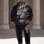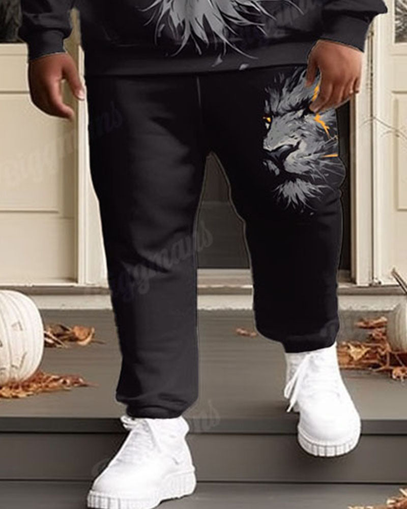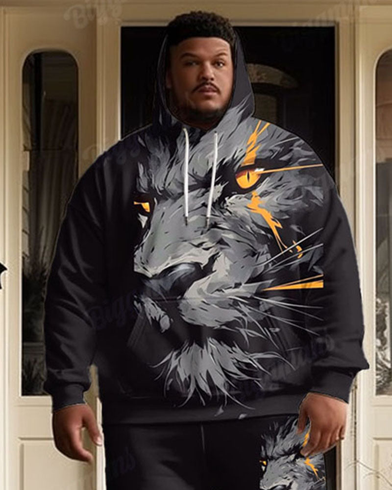 Mens Street Fashion Graffiti Black Tiger Print Plus Size Hoodie Suit