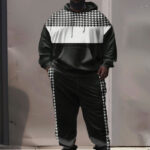Men’s Street Fashion Houndstooth Colorblock Plus Size Hoodie Suit
