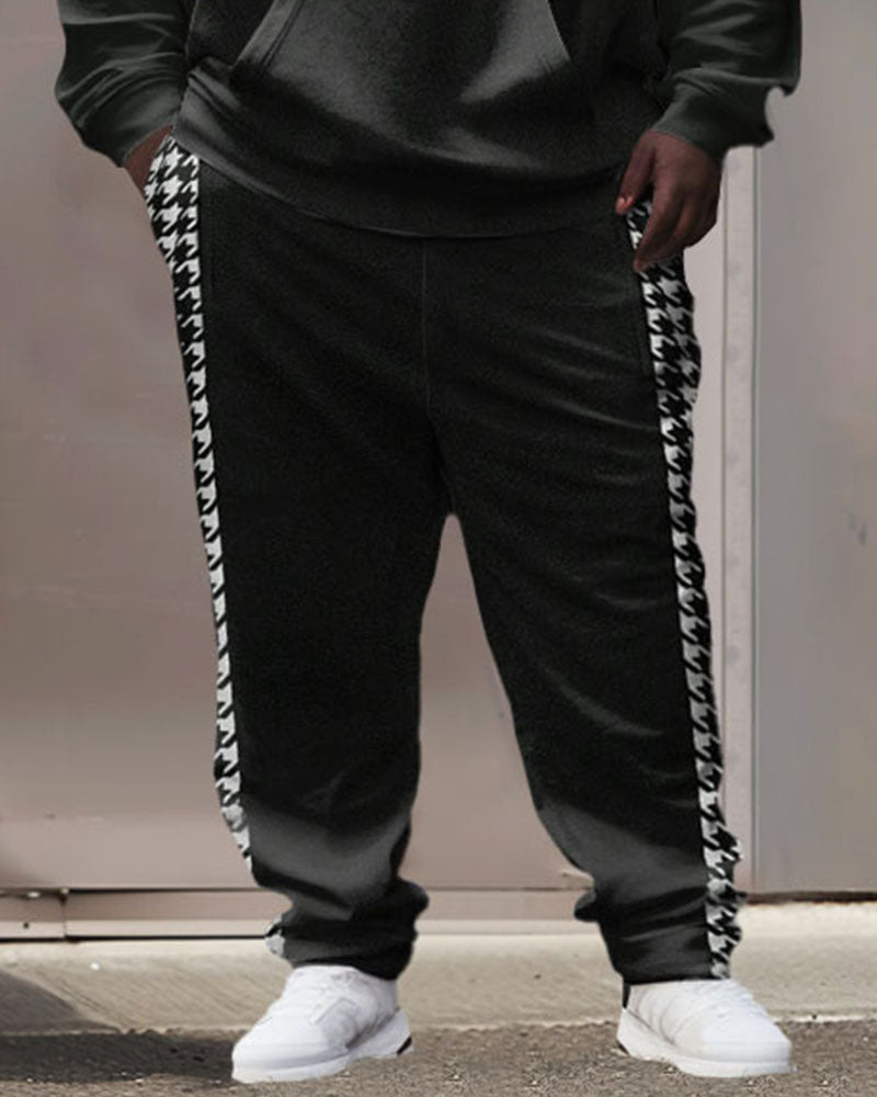 Men's Street Fashion Houndstooth Colorblock Plus Size Hoodie Suit