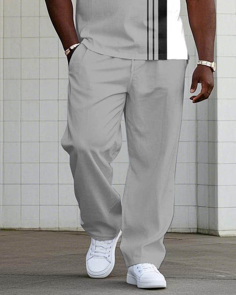 This two-piece set for big men redefines smart-casual wear with its simple color block. The breathable fabric with mechanical stretch provides all-day comfort, while the precision tailoring ensures a flattering drape for taller frames. Perfect for the modern man who values versatile sophistication.