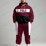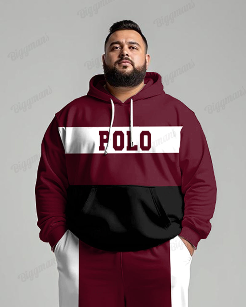 Simple Colorblock Letter Print Men’s Big and Tall Hoodie Set