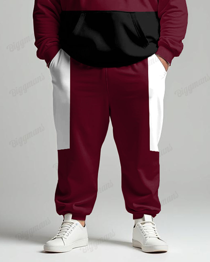 Simple Colorblock Letter Print Men's Big and Tall Hoodie Set