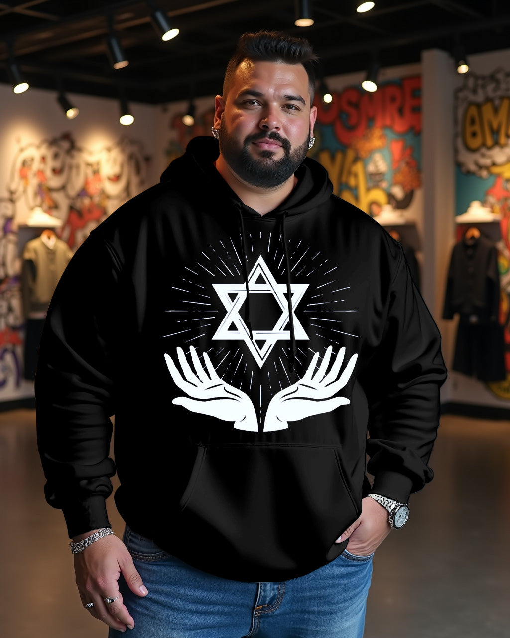 Star Of David Oversized Cotton Hoodie