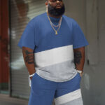 This big guy’s set is designed with blue, white, and gray , simple yet creative. The simple design is suitable for daily wear while showing your fashion taste. No need to worry about feeling restrained, its relaxed fit allows you to enjoy comfort in spring and summer.