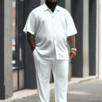 This shows a simple style. The minimalist design allows you to maintain elegance and confidence on any occasion. The set adopts a loose and large size cut, providing a comfortable wearing experience and suitable for all body types.