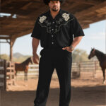 Western Denim-Men’s Plus Size Simple Black Short Sleeve Shirt Pants Suit